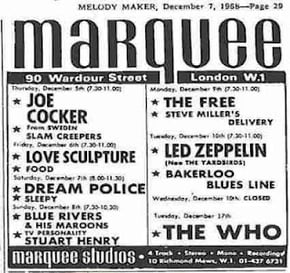 英国マーキー・クラブ®(marquee club®)は戦後の英国ポップ・ミュージック史において最も重要なクラブとして、オープン以来ブルース、ソウル、ロック、パンク、ポップ等、数多くのパフォーマンスが行われてきました。